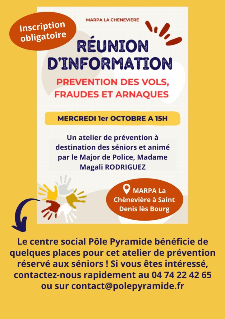 Vous êtes ici : Accueil / Atelier de prévention contre les vols, arnaques et fraudes (MARPA la Chènevière)