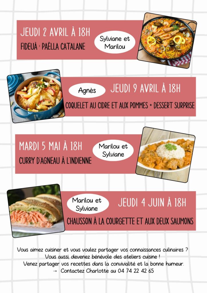 Ateliers cuisine d’avril à juin
