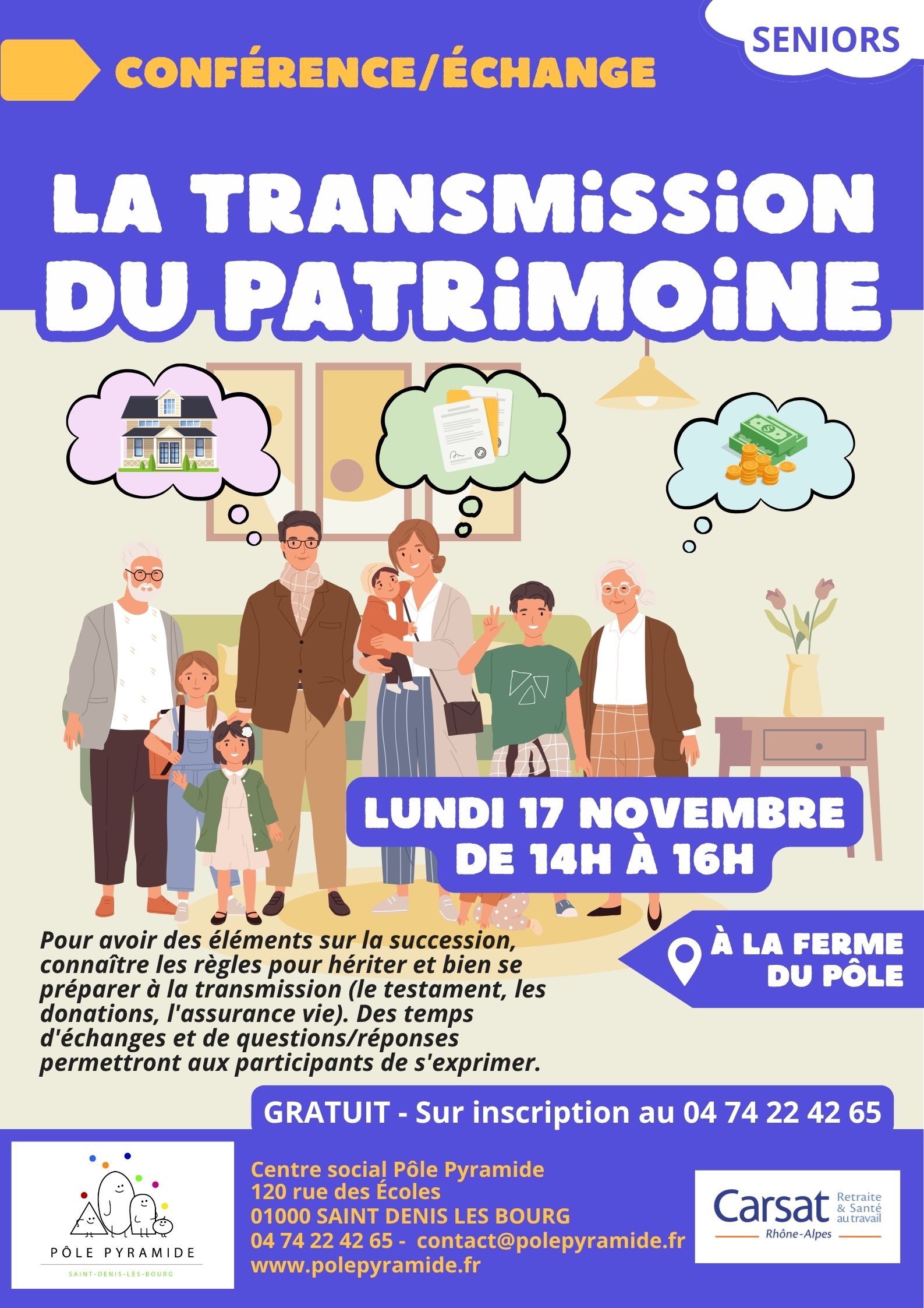 Vous êtes ici : Accueil / Conférence/échange : La transmission du patrimoine (séniors) / Conference-heritage-A5