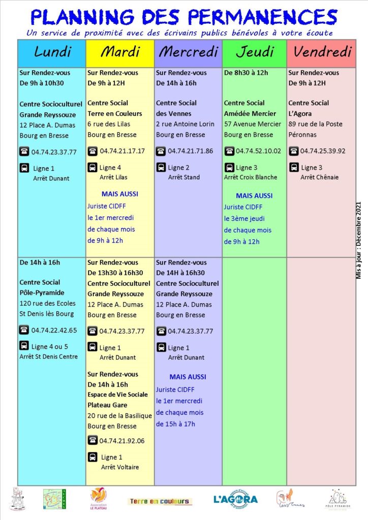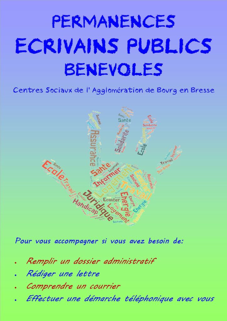 Vous êtes ici : Accueil / Planning des permanences des écrivains publics dans les centres sociaux de l’agglomération de Bourg-en-Bresse