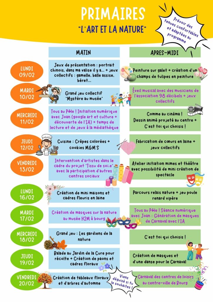 Programme des vacances d’hiver au centre de loisirs