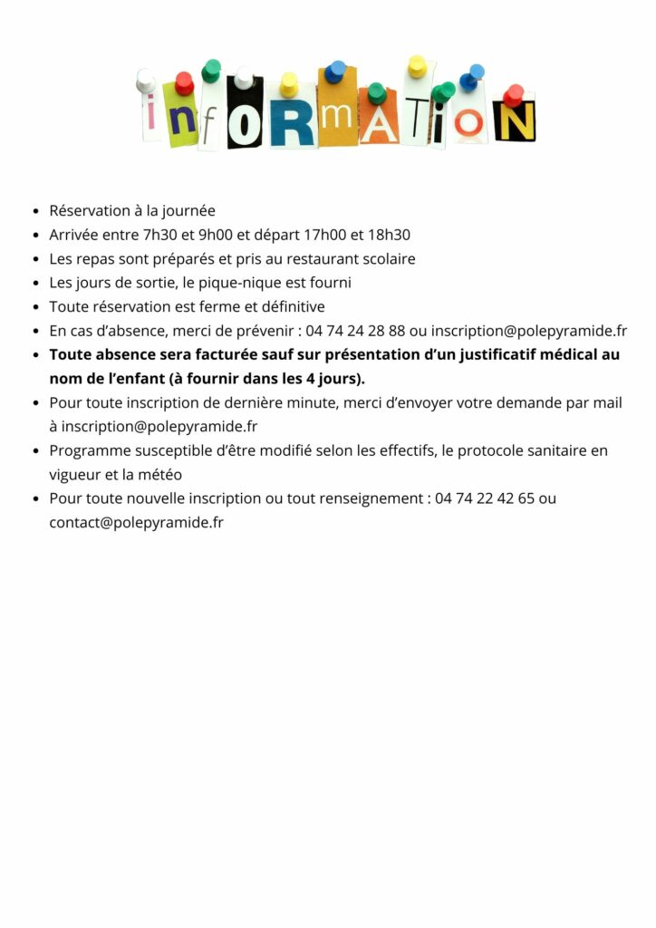 Centre de loisirs vacances scolaires